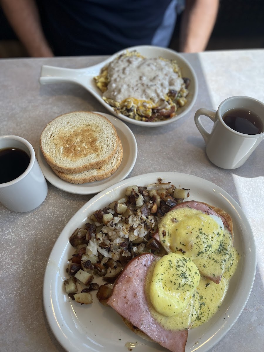 Eggs Benedict with American Fries and Onions